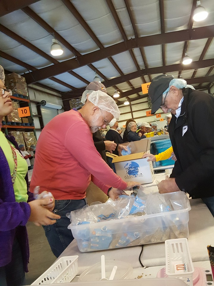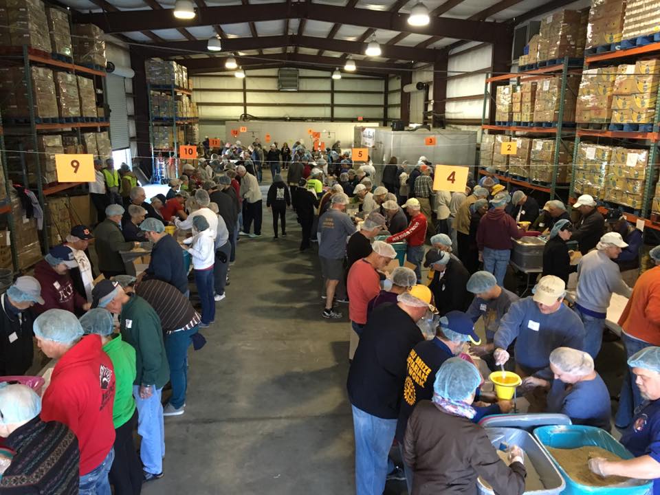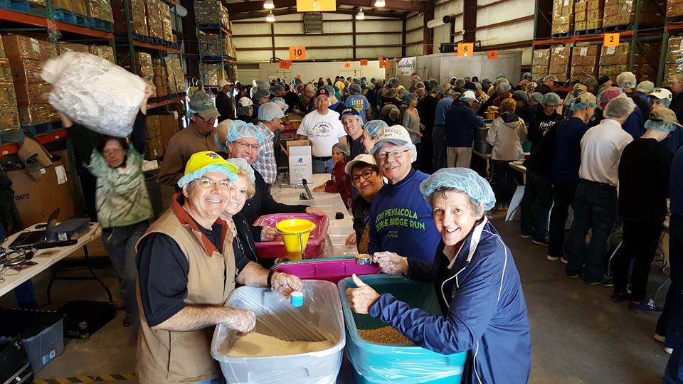 Over 400 Rotarians and volunteers from Pensacola and NW Florida Panhandle (including 6 from Navarre Rotary) descended on Manna Food Pantries in Pensacola on Saturday Feb 27th to make over 75,000 meals for families in Escambia and Santa Rosa County.